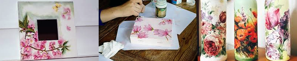 Decoupage jest techniką ozdabiania przedmiotów za pomocą wzoru wyciętego z papieru lub serwetki. W efekcie przedmioty wyglądają jakby właśnie zostały pomalowane.