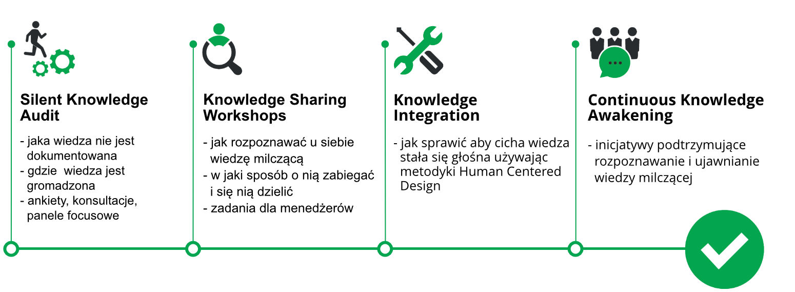 Inicjatywa skupiająca się na ujawnianiu i wykorzystywaniu cichej wiedzy, niewykorzystanego jeszcze potencjału w organizacji. Proces rozpoczyna się od identyfikacji tych obszarów, w których wiedza cicha jest najbardziej obecna.