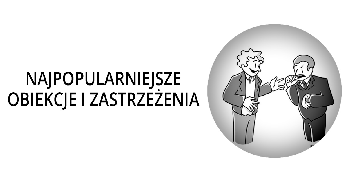 - Gdy zastrzeżenie dotyczy braku chęci spotkania się z handlowcem, warto zagrać ograniczonym czasem spotkania oraz możliwością przeanalizowania korzyści ze współpracy z waszą firmą.