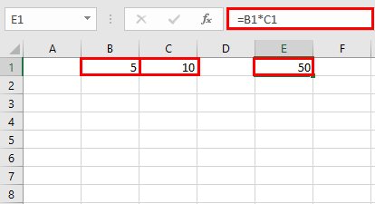 Następnie wprowadź wartości lub komórki, które chcesz pomnożyć w następującym formacie:
