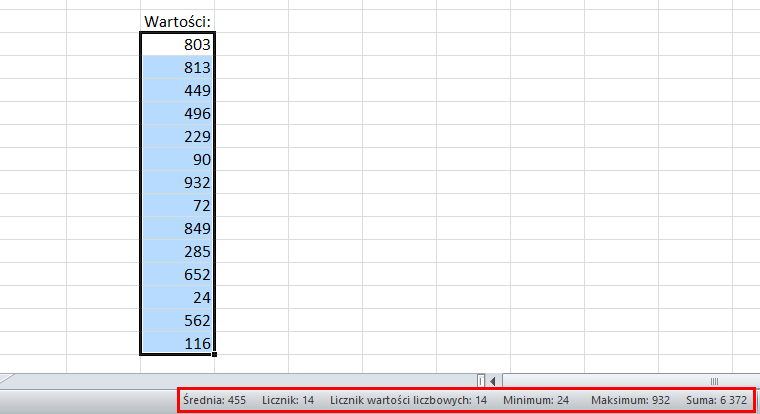 W szybki i prosty sposób za pomocą jednego kliknięcia możesz mieć dostęp do takich wartości jak suma, średnia, wartość maksymalna i wiele innych.