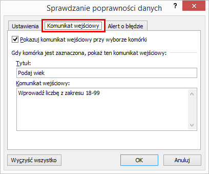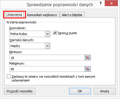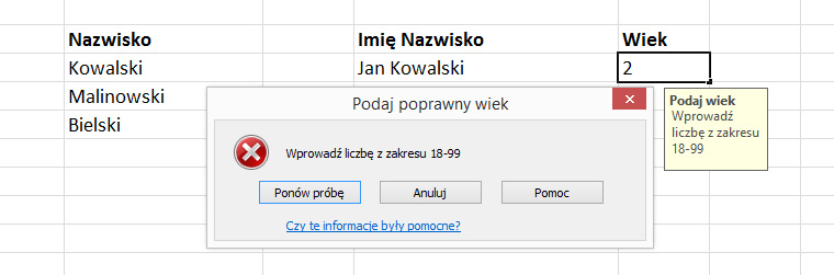 Excel ma opcję sprawdzania poprawności wprowadzanych danych, która nakłada ograniczenia na dane wejściowe (dane wprowadzane przez użytkownika).