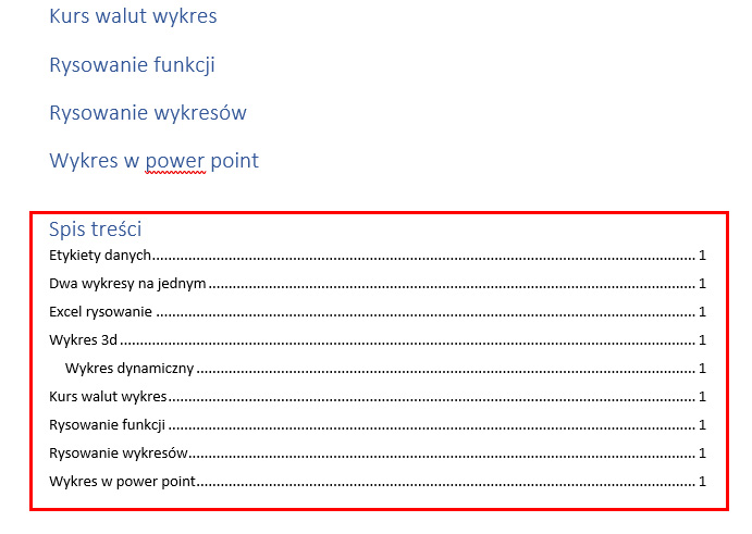 Spis treści umożliwia czytelnikom szybkie znalezienie potrzebnych informacji. Program Microsoft Word ma wbudowaną opcję tworzenia spisu treści, który aktualizuje się przy każdej zmianie w treści dokumentu.