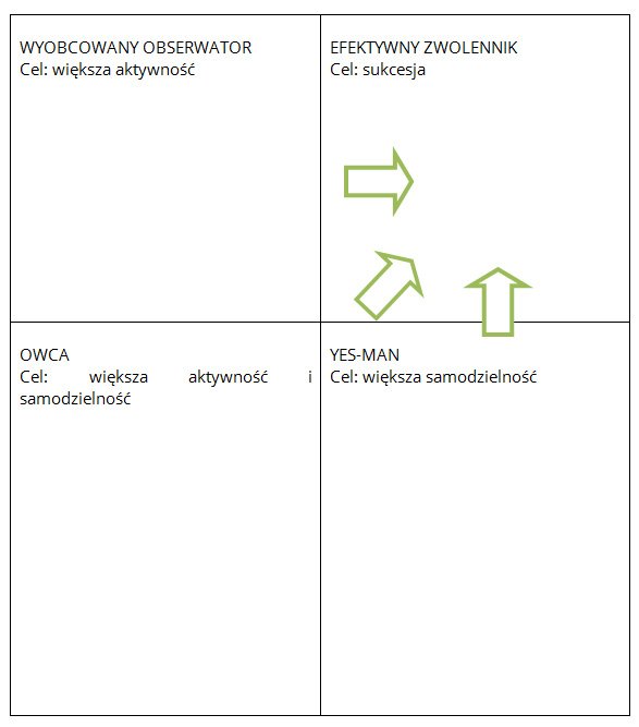 Przy każdym typie jest opisany najważniejszy cel do osiągnięcia z tym pracownikiem. Zapisz swoje pomysły na działania, które pozwolą przekształcić pracowników w efektywnych zwolenników.