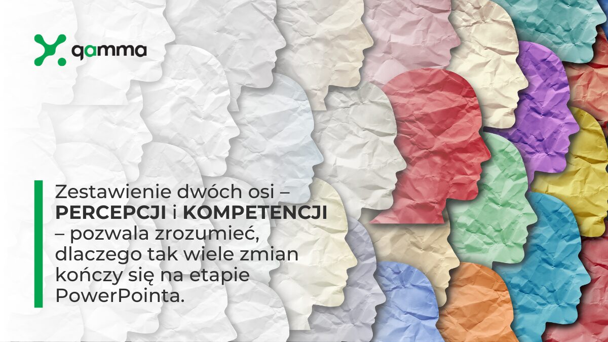 Zestawienie tych dwóch osi – percepcji/zaangażowania i kompetencji – pozwala zrozumieć, dlaczego tak wiele zmian kończy się na etapie PowerPointa.