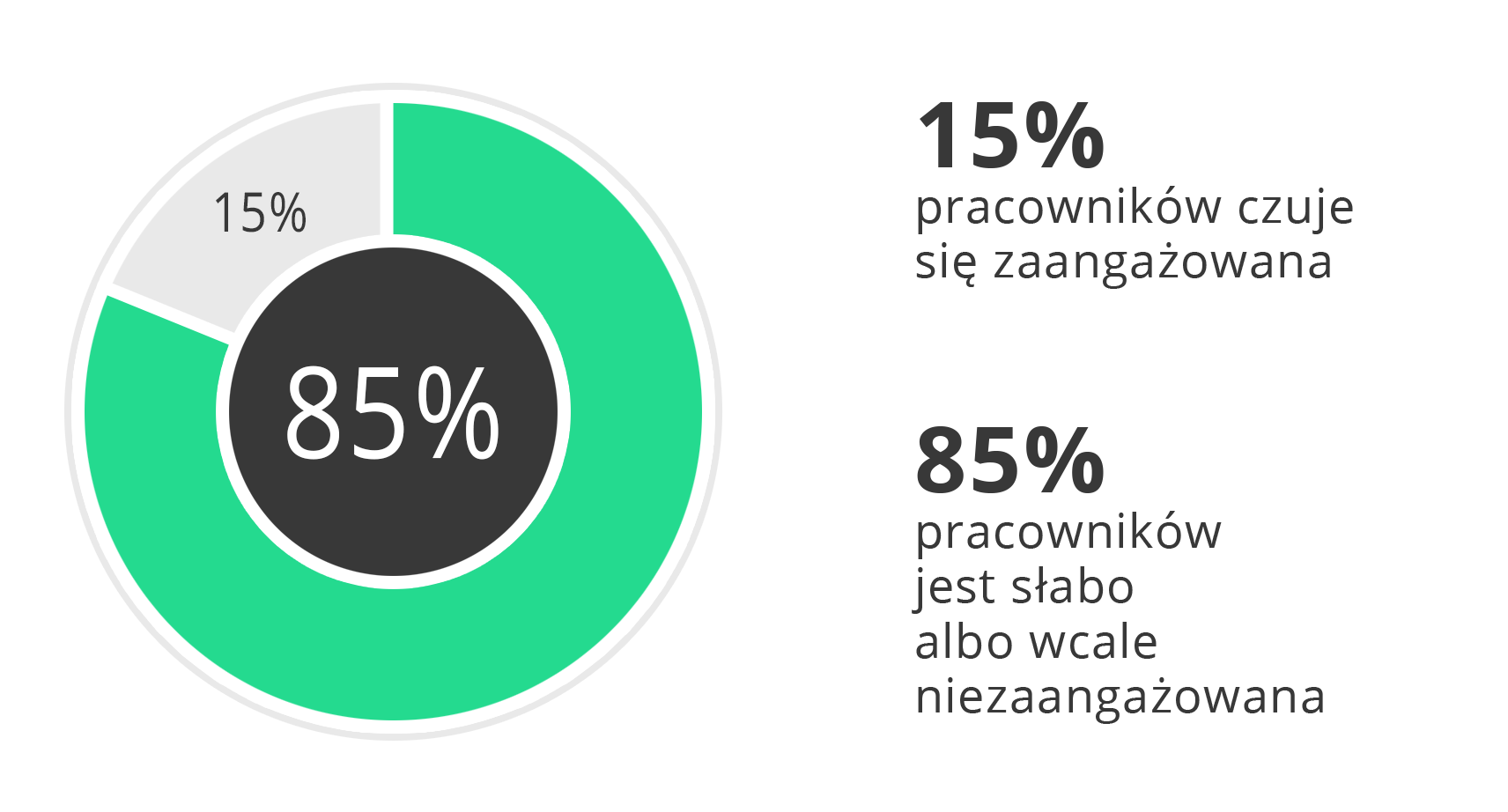 Tymczasem wyraźne zaangażowanie w swoją pracę i wysoki poziom entuzjazmu w stosunku do niej ma w Europie Wschodniej tylko 15% pracowników (Raport Gallupa 2017). To poważna bariera i duże pole do popisu dla pracodawców. Oznacza to ni mniej ni więcej, że średnio 85% ludzi idzie do pracy, bo tak trzeba, a nie dlatego, że to lubi.