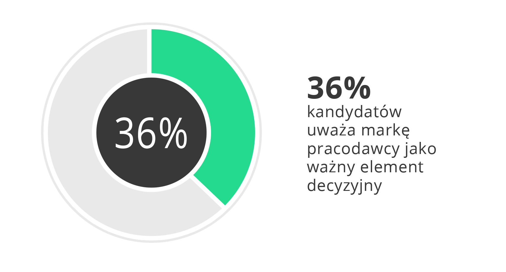 To też unikalność i wyjątkowość, która ma szansę przyciągnąć pracownika. Jak pokazują wyniki badania Gallupa, 36% kandydatów uważa markę pracodawcy za jeden z kluczowych czynników ułatwiających podjęcie decyzji o zatrudnieniu.