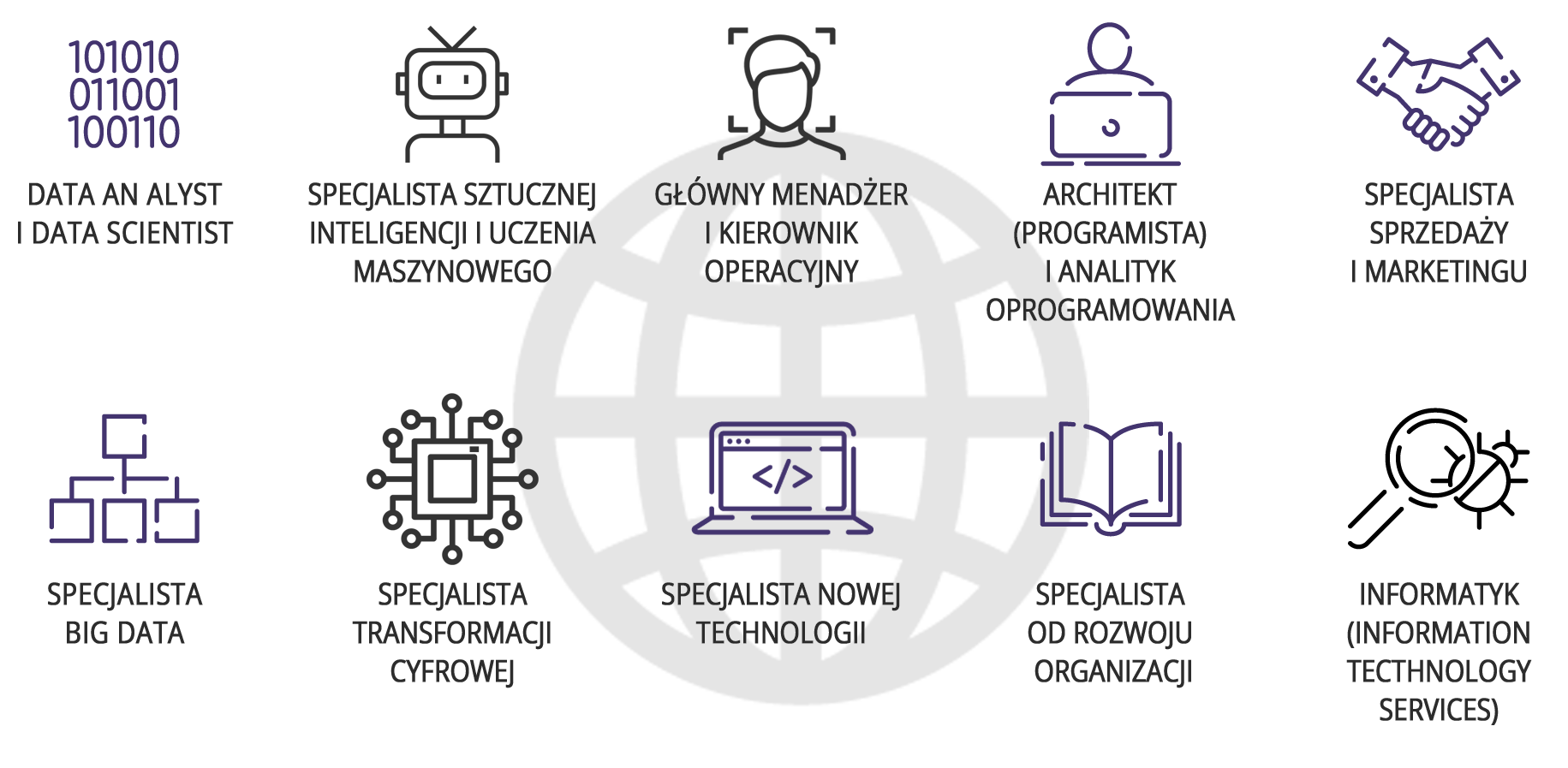 Według prognoz zmniejszy się zapotrzebowanie na zajęcia administracyjno-biurowe czy zawody związane z produkcją dóbr i usług oraz z pracą powtarzalną i rutynową. Wzrośnie za to popyt na pracę w sektorze finansowym, ze względu na ogromną liczbę danych, które trzeba będzie umiejętnie przetwarzać, selekcjonować, interpretować i prezentować.