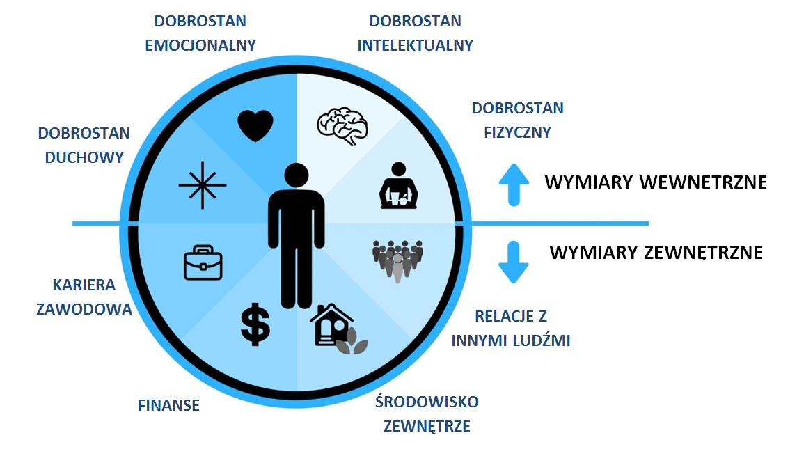 Jeżeli myślimy o tym, aby wspierać człowieka w osiąganiu maksymalnego dobrostanu potrzebujemy poznać, zrozumieć i wspierać każdy z wymiarów, które razem wytwarzają poczucie wellness.
