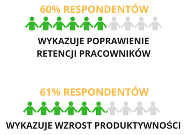 - WZROST POZIOMU SATYSFAKCJI Z PRACY